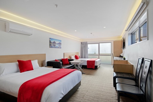 Our Access Twin Studios consist of two comfortable Queen size beds in the lounge. Premium Bedding and extra Pillows are provided. The room features a large ensuite bathroom with shower (wheelchair accessible, bench seat, and assistance railing), hair dryer, towels, hand towels and facecloths, and free toiletries. Kitchenette with refrigerator, microwave, two ring hot plate, extractor fan, cooking utensils, and crockery. Kept cool or warm by an Hitachi heat-pump and air-conditioner these rooms are spacious and include an LCD Smart TV (Netflix free) with ample seating, writing desk, and table. These units are available only on the ground floor and are completely wheelchair friendly. Rates are for two guests with additional guests $30 per person per night( Maximum 4 guests). Children under two years stay free. Daily housekeeping